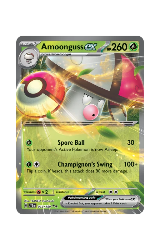 Oryginalna karta Pokemon Amoonguss ex z setu Pokémon Journey Together o skróconej numeracji JTG 011.