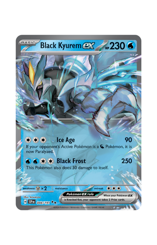 Oryginalna karta Pokemon Black Kyurem ex z setu Pokémon Surging Sparks o skróconej numeracji SSP 048.