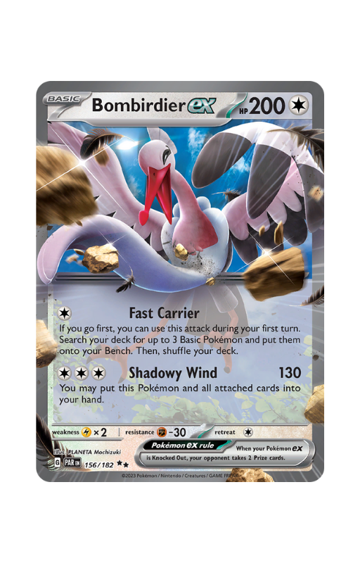 Oryginalna karta Pokemon Bombirdier ex z setu Pokémon Paradox Rift o skróconej numeracji PAR 156.