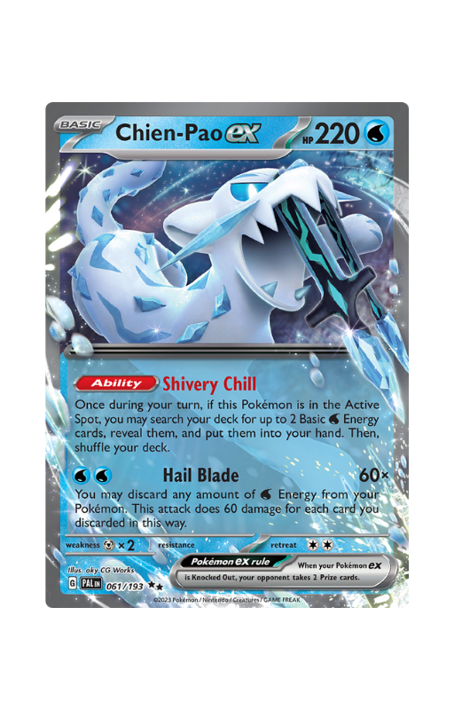 Oryginalna karta Pokemon Chien-Pao ex z setu Pokémon Paldea Evolved o skróconej numeracji PAL 061.