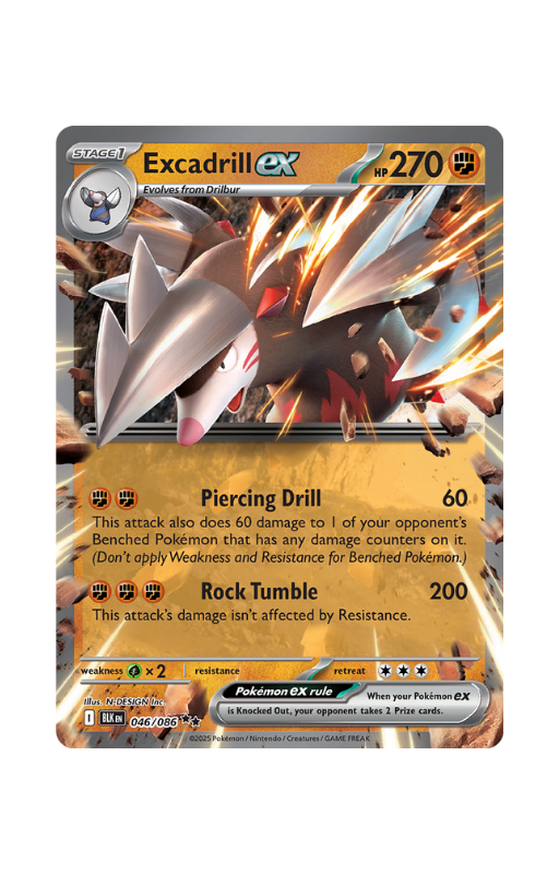 Oryginalna karta Pokemon Excadrill ex z setu Pokémon Black Bolt o skróconej numeracji BLK 046.
