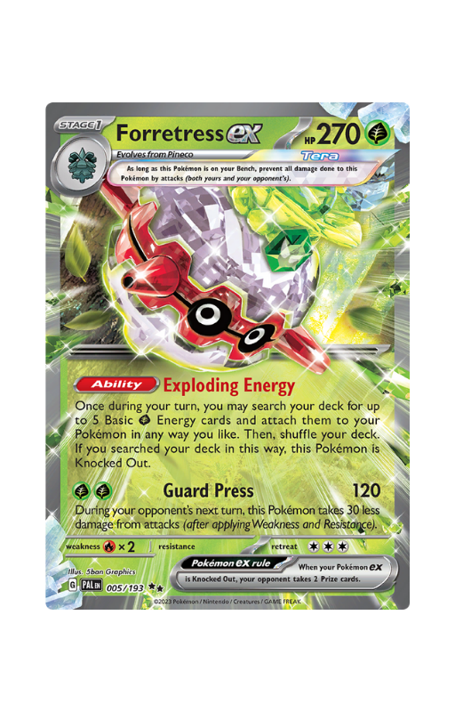 Oryginalna karta Pokemon Forretress ex z setu Pokémon Paldea Evolved o skróconej numeracji PAL 005.