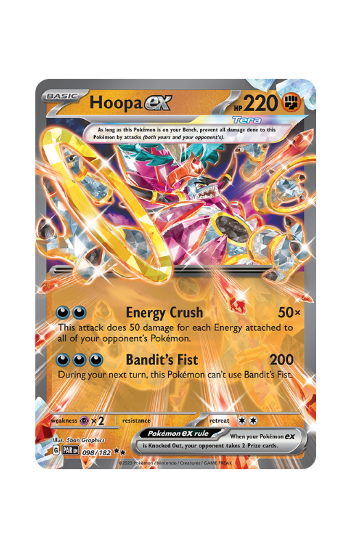 Oryginalna karta Pokemon Hoopa ex z setu Pokémon Paradox Rift o skróconej numeracji PAR 098.