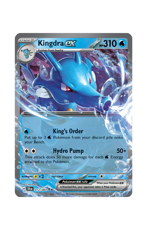 Oryginalna karta Pokemon Kingdra ex z setu Pokémon Shrouded Fable o skróconej numeracji SFA 012.