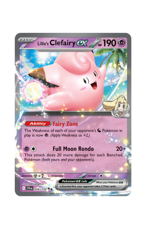 Lillie's Clefairy ex jest świetną odpowiedzią na karty typu smoczego, które naturalnie nie mają żadnych słabości. Jej umiejętność sprawia, że pokemony psychiczne zadają podwójne obrażenia w pokemony smocze, dzięki czemu stała się nieodłączną częścią decków takich jak Gardevoir ex czy Tera box.
