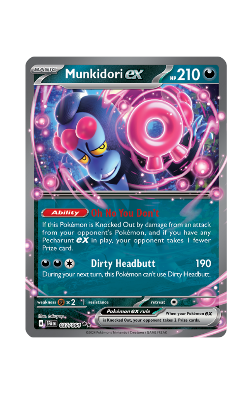 Oryginalna karta Pokemon Munkidori ex z setu Pokémon Shrouded Fable o skróconej numeracji SFA 037.