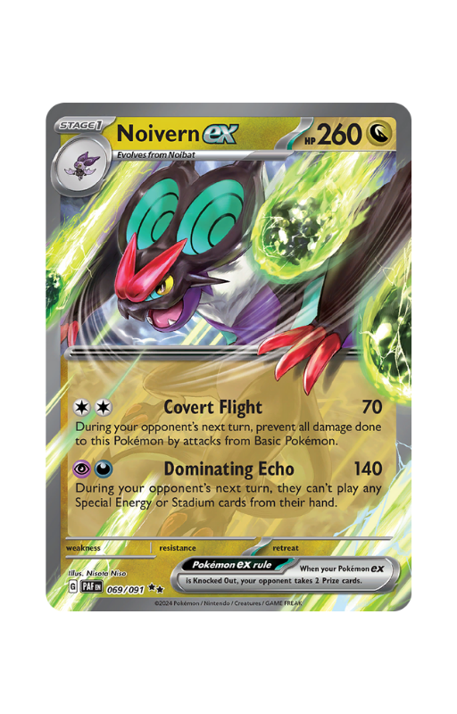 Oryginalna karta Pokemon Noivern ex z setu Pokémon Paldean Fates o skróconej numeracji PAF 069.