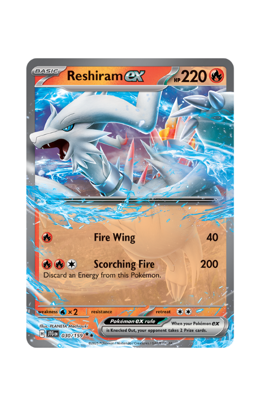Oryginalna karta Pokemon Reshiram ex z setu Pokémon Journey Together o skróconej numeracji JTG 030.