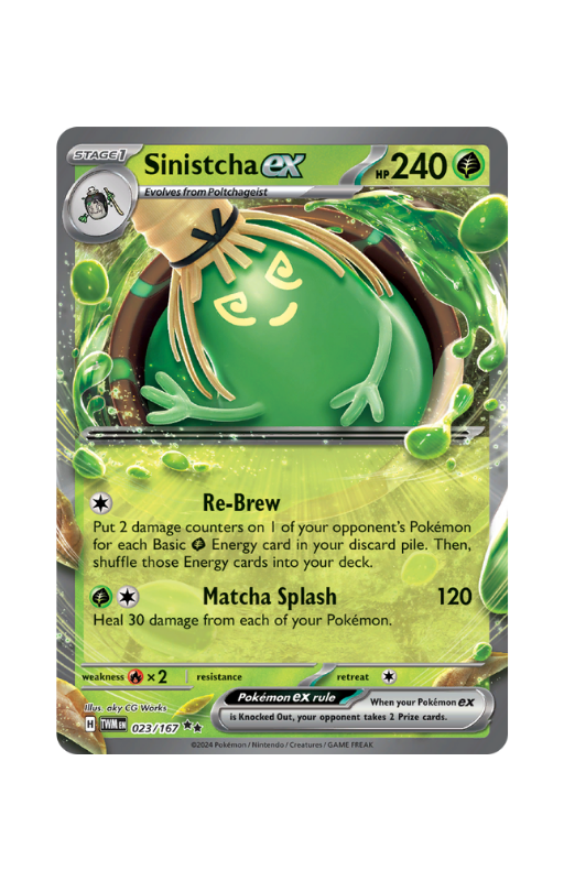 Oryginalna karta Pokemon Sinistcha ex z setu Pokémon Twilight Masquerade o skróconej numeracji TWM 023.